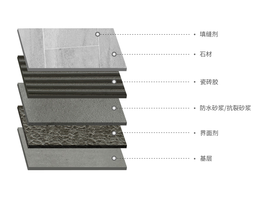 Good water resistance; Firmly bonded and not prone to hollowing and peeling; Thin coating and pasting, space saving, lightweight.