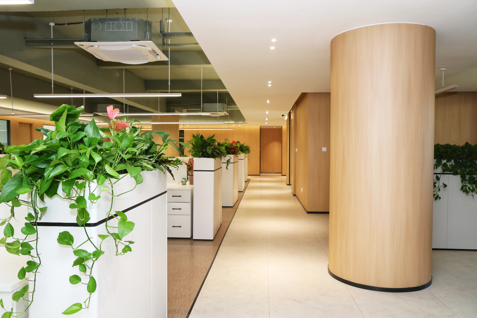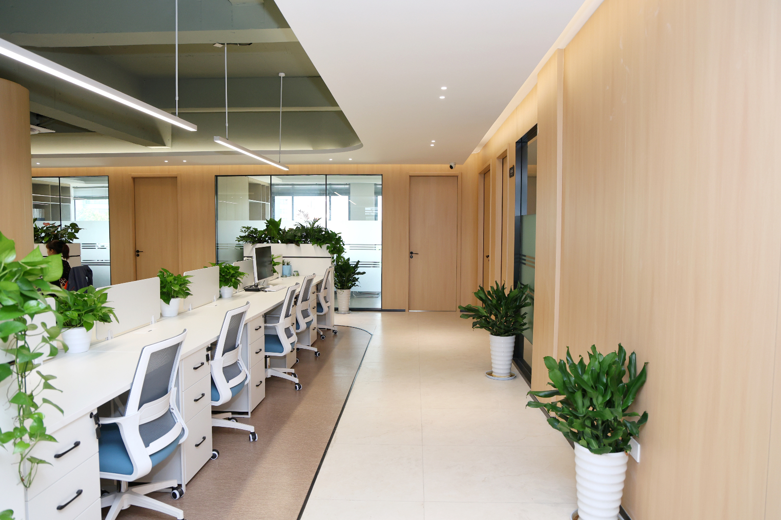 人文关怀与绿色健康: 空间广泛采用环保建材与绿色装饰,体现了集团对可持续发展承诺的践行。增设的休闲水吧、静谧的阅读角等人文关怀设施,旨在为员工创造一个健康、舒适、平衡的工作生活环境,真正体现“以人为本”的企业文化。